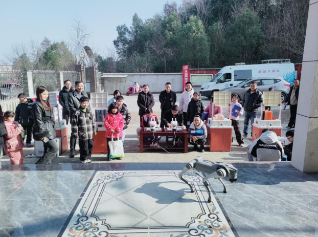 活动现场秩序井然,乡村学生参与科普活动的热情高涨、氛围浓厚。科普互动展品区域,大人小孩欢聚一堂,在科普志愿者的专业指导下有序体验操作;在下棋机器人旁,村里青少年争相对弈互动,在趣味博弈中锤炼逻辑思维能力;机器狗展演环节,智能设备依令灵活完成跳跃、翻滚等一系列动作,孩子们纷纷驻足观赏、拍照记录,在近距离体验中直观感受人工智能的科技魅力。活动现场,市科技馆还向阳新县朝六村留守儿童、困难家庭子女捐赠科学实验套装,套装内含趣味实验器材与操作手册,助力孩子们足不出户开展科普小实验,持续激发科学探索热情与创新思维。此次活动不仅丰富了乡村群众的新春精神文化生活,有效弥补乡村科普资源供给短板,更让科普知识走进乡村、贴近群众,赢得朝六村村民群众的广泛好评与高度认可。