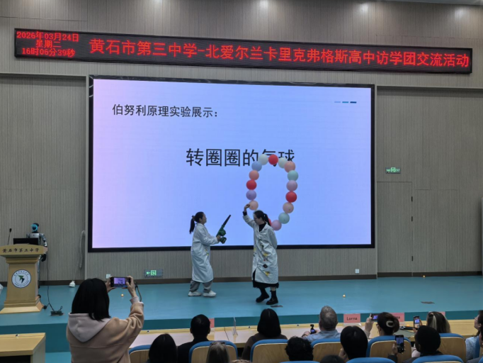 为深化中外青少年文化交流,厚植科学素养培育根基,3月24日,科普大篷车走进黄石三中,为前来交流的北爱尔兰师生开展专场科普展演活动,以趣味科技搭建交流桥梁,以科普互动增进中外情谊,活动现场氛围热烈、成效显著。